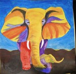 2007Soortgelijke olifant als die op doek, dit keer op papier met kalf